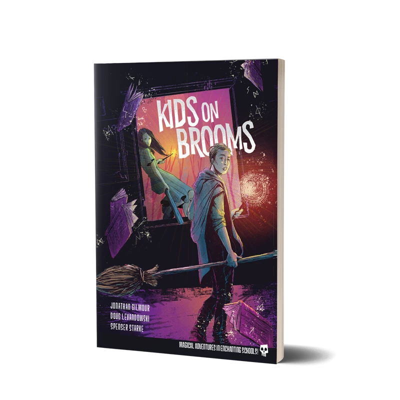 Kids on Brooms is a collaborative role-playing game about taking on the life of a witch or wizard at a magical school you all attend- a place full of mystery, danger, and thrilling adventure. From dealing with strict professors to facing down mythical beasts, players will get the opportunity to ride brooms, brew potions, and cast powerful magic as they uncover the incredible secrets their school and its inhabitants hold. Built using the ENnie Award-Winning Kids on Bikes framework, it is a rules-light, narrative-first storytelling game perfect for new players and gaming veterans alike!
