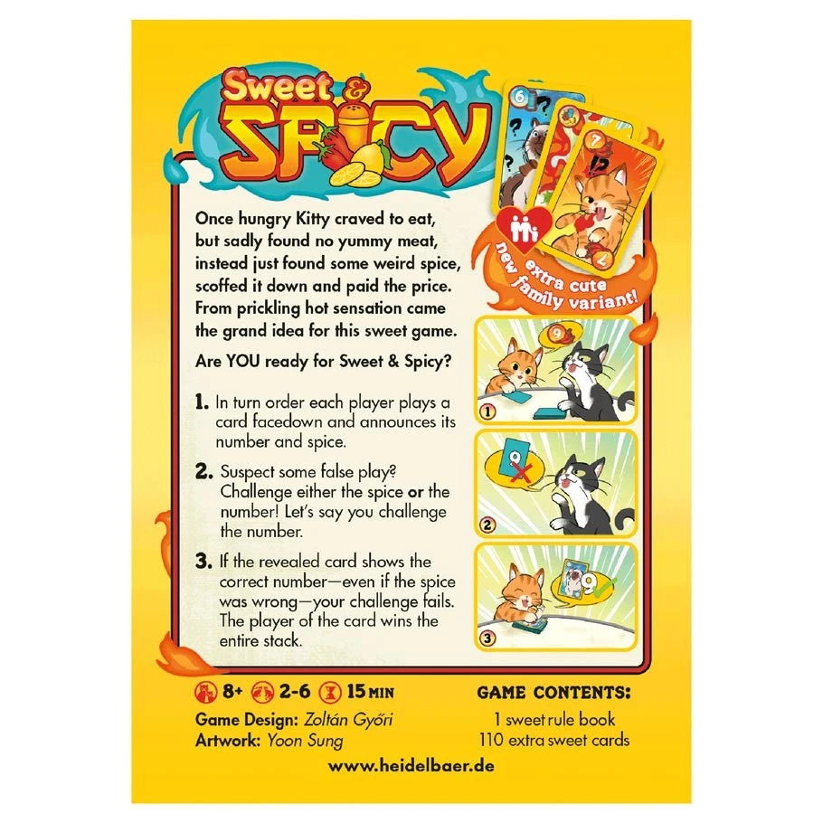 Sweet & Spicy is a bluffing card game for 2-6 players and the kid-friendly variant of Spicy. Instead of Wasabi you can now play with Lemon and there is a new card in the game: The SUPER-JOKER. But the game principle remains the same.
